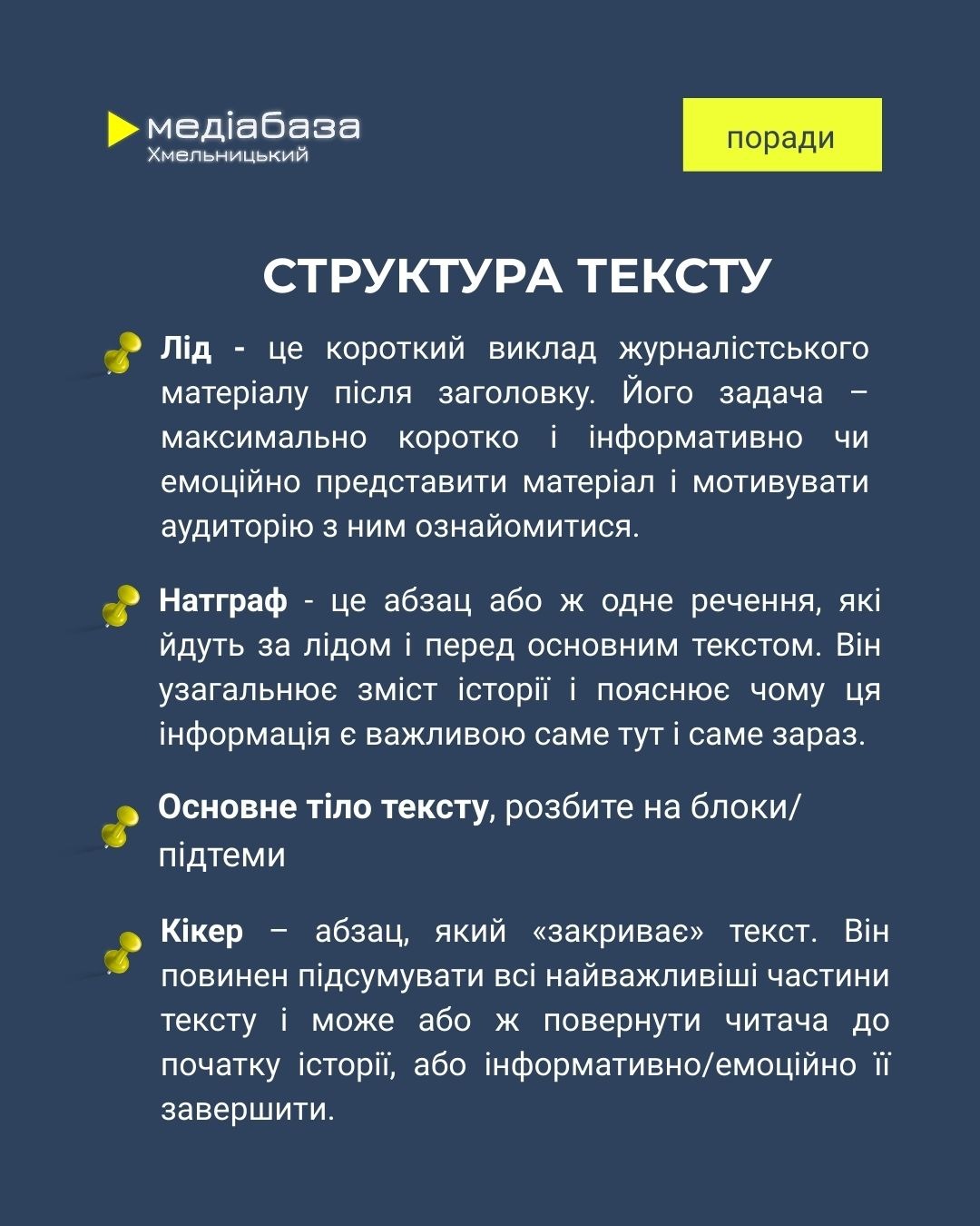 Якою має бути структура журналістського тексту. Ілюстрація Медіабази Хмельницький