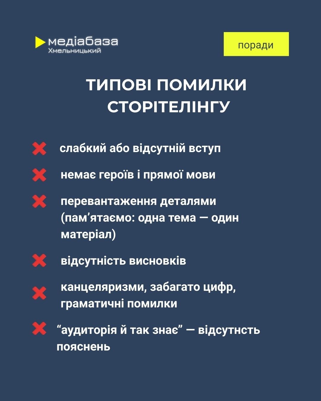Типові помилки сторітелінгу в журналістських текстах. Ілюстрація Медіабази Хмельницький